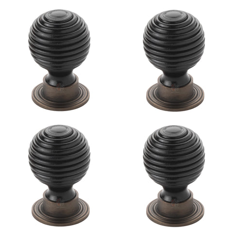 Pack of 4 Small Ebonised Aged Brass Beehive Cupboard Knobs