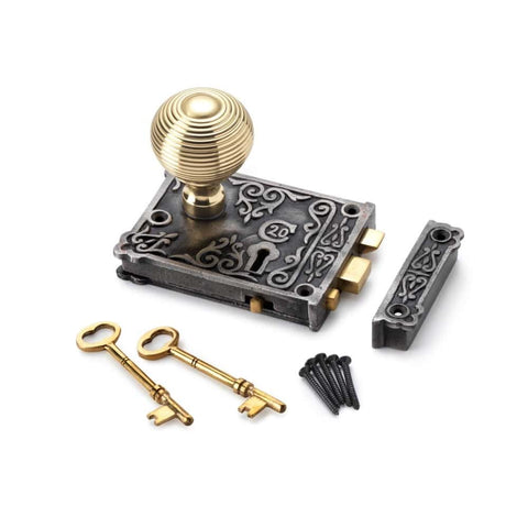 Cast Iron Floral Rim Lock Heavy Aged Brass Beehive Door Knobs
