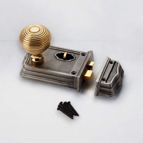 Small Cast Iron Pewter Gothic Rim Latch Lock Aged Solid Brass Beehive Door Knobs