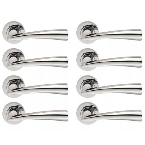 8 Pairs of Polished Chrome Twirl Lever on Rose Internal Door Handles Set