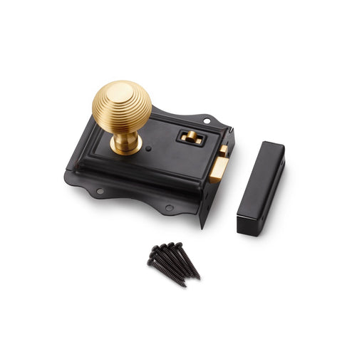 Black Brass Olde Victorian Rim Lock Heavy Satin Brass Beehive Door Knobs
