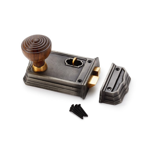 Pewter Cast Iron Regency Rim Lock Ebony Aged Brass Bun Door Knobs