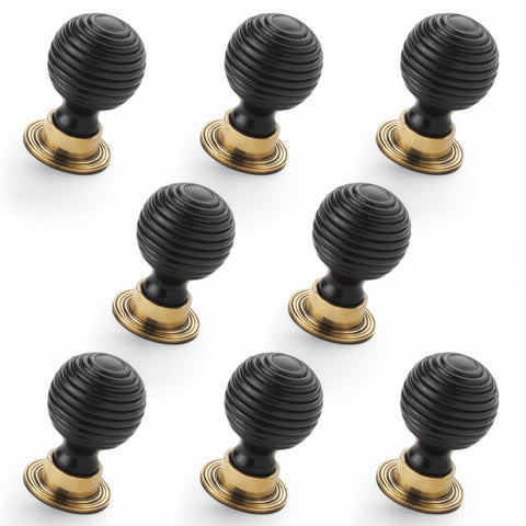 8 Small Black Ebonised Beehive Cupboard Door Knobs Cabinet Wooden Wood Pull