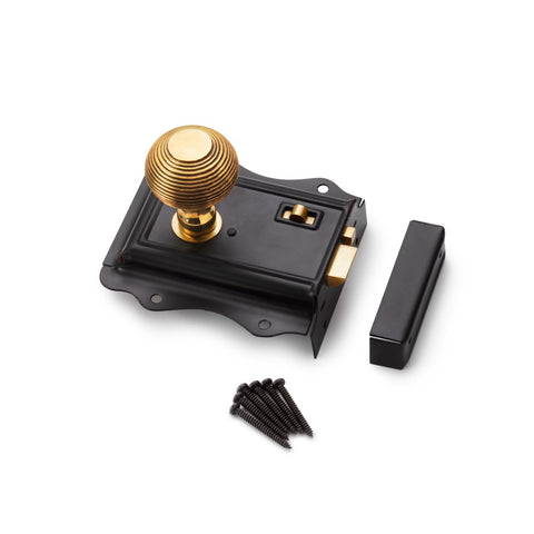 This Olde Victorian rim lock set combines a traditional black and brass rim lock with heavy solid brass beehive door knobs in an aged brass finish. Designed for period properties, it delivers authentic Victorian character with a reassuringly solid, high-quality feel.