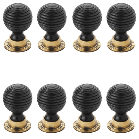 Pack of 8 Small Ebonised Aged Brass Beehive Cupboard Knobs