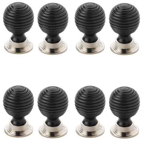 Pack of 8 Small Ebonised Polished Nickel Beehive Cupboard Knobs