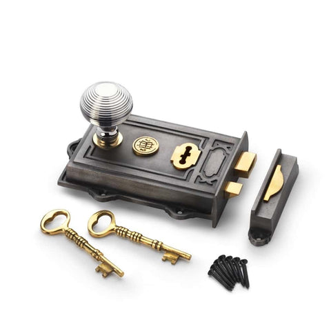 Handcrafted from Solid Cast Iron, the Davenport Rim Lock features meticulously reproduced brass components, reflecting an era of intricate detailing. Beyond their aesthetic appeal, these items boast a substantial weight, making them a prime choice for period restoration projects and spaces seeking a touch of timeless sophistication.