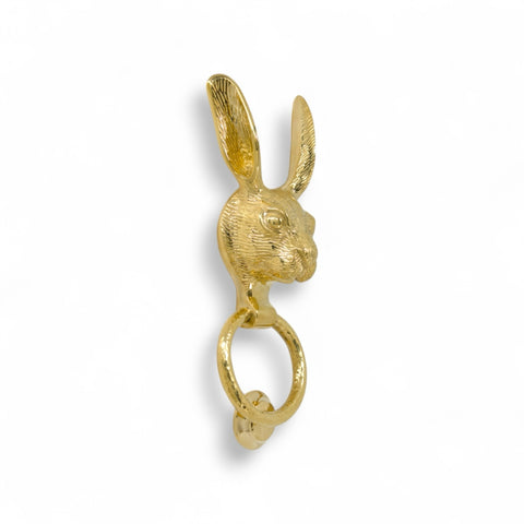 Solid Brass Hare Door Knocker – Polished Brass with Hammered Ring