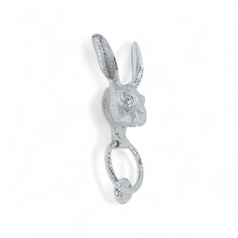 Solid Brass Hare Door Knocker – Polished Chrome with Hammered Ring